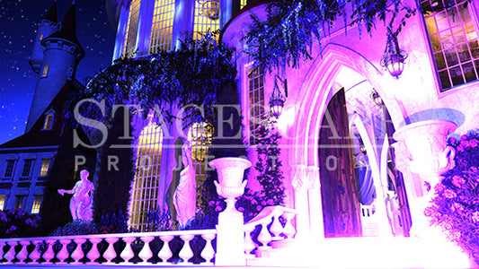 Specifically designed for the Prologue scene in Beauty and the Beast, this projection beautifully brings the castle steps to life. Featuring gothic architecture, romantic statues, and wisteria climbing the walls, it creates a captivating, timeless atmosphere. The distant turrets, with a soft glow emanating from the windows, hint at the grand scale and vibrant life within the castle.