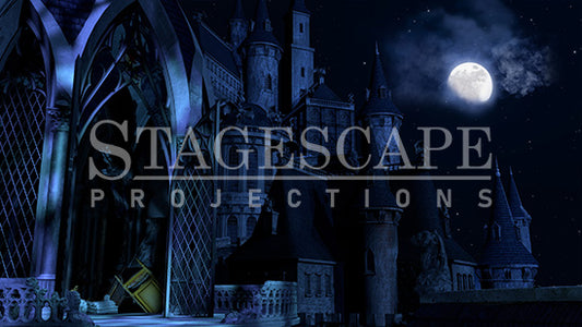 This captivating scene offers a deeper glimpse into the world of the Beast's Castle, presenting the eerie perspective from The West Wing Balcony. Originally designed for Beauty and the Beast, it features a decrepit balcony with crumbling handrails, evoking a sense of decay and foreboding.