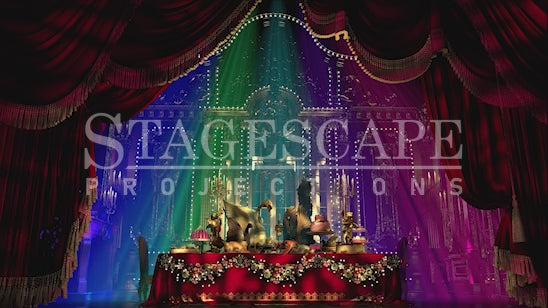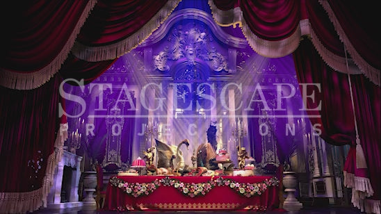 The animated option for this scene adds dynamic elements, including flickering candlelight and gently moving gobo lighting, creating a magical and theatrical backdrop perfectly tailored to compliment "Be Our Guest." The subtle motion of the lights enhances the atmosphere without drawing focus away from the performance, adding depth and vibrancy to the scene.
