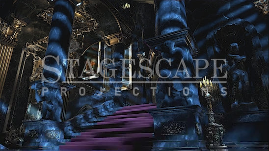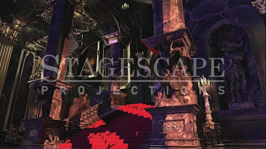 The careful interplay of scale, detail, and luxurious materials creates an ambience of majesty, mystery, and Gothic opulence, perfectly embodying the essence of an enchanted castle. Whether serving as the backdrop for a pivotal moment or a setting for dramatic transitions, this scene delivers an unforgettable combination of elegance and fantasy, elevating your production to new heights.