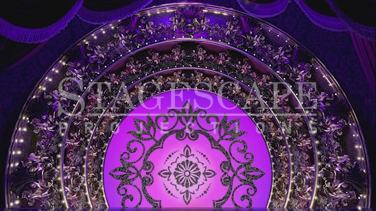 Twinkling fairy lights chase around the ornate dinner plate arches, timed seamlessly to match the rhythm of the music, adding a delightful touch of vaudeville magic. As the number progresses, dynamic lighting effects take centre stage, enhancing the theatricality of the scene. Roaming dome lights and energetic chasing beams build excitement and grandeur, culminating in a truly spectacular finale.